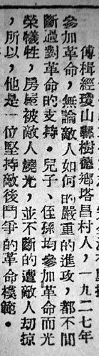 作为进京代表之一,傅楫经于1951年9月13日与其他代表一起离岛。他的简历在《海南日报》前身———当年9月14日的《新海南报》上刊登:傅楫经,琼山县树德乡塔昌村人,1927年参加革命,无论敌人如何严重的进攻,都不间断过对革命的支持。儿子、侄孙均参加革命而光荣牺牲,房屋被敌人烧光,并不断的遭敌人劫掠,所以,他是一位坚持敌后斗争的革命模范。
